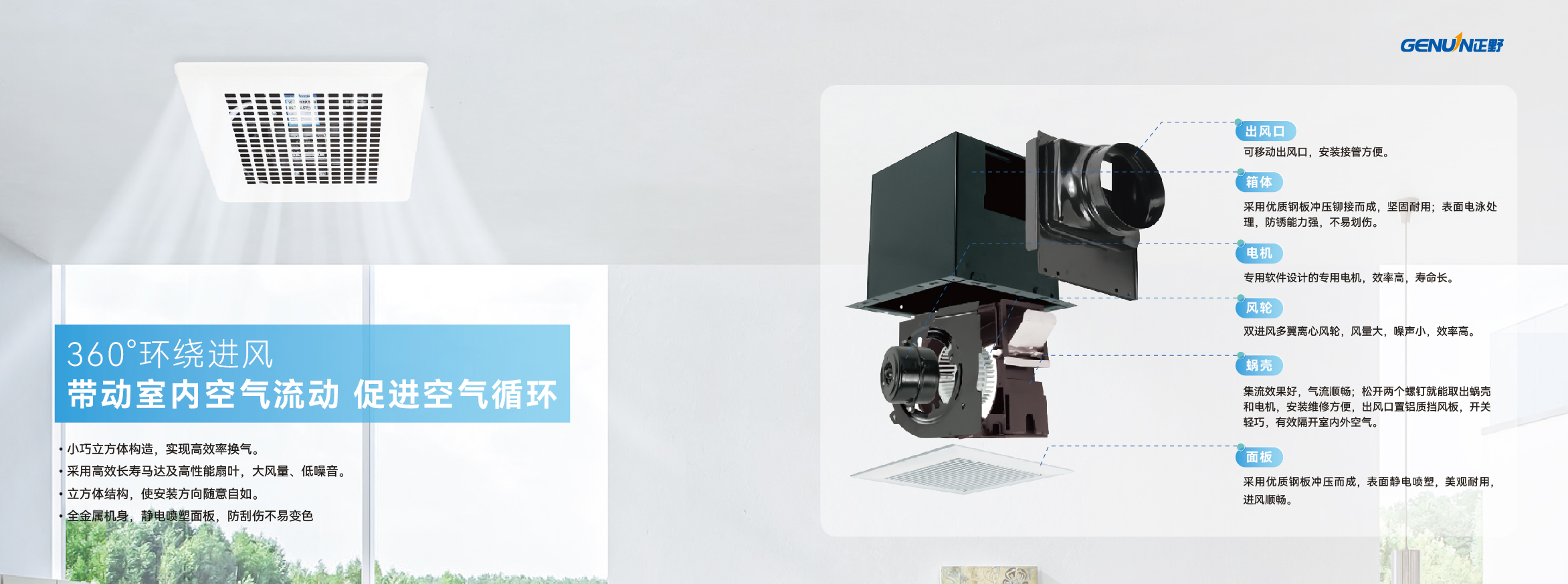● 360°环绕进风 风量范围广